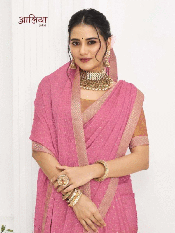 Alia Rose Pink Woven Saree – Savitri Collection