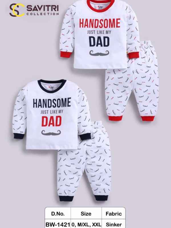 "Handsome Like Dad" Boys’ Nightwear Set – Full Sleeve Cotton Pyjama Suit