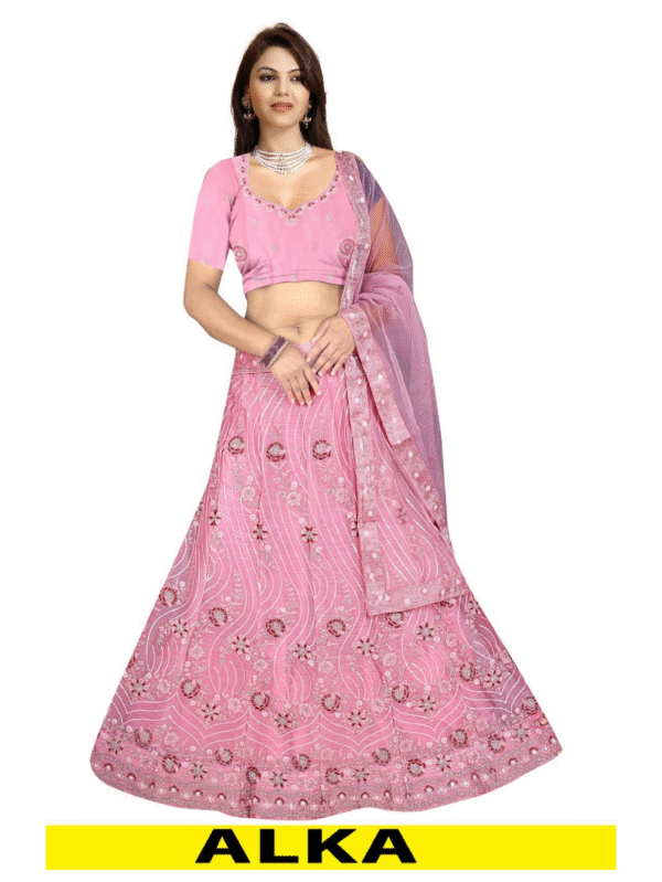 ALKA Baby Pink Embroidered Net Designer Lehenga Choli