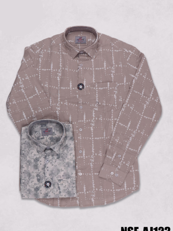 Cotton Printed Full Sleeve Shirt (NSE-AJ123) – available in modern grid and floral prints. Soft cotton fabric, breathable comfort, and versatile style.