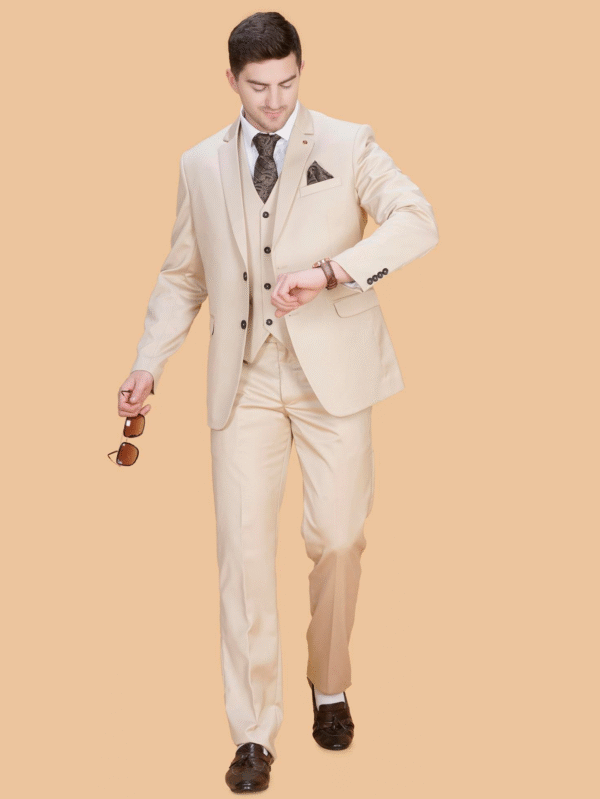 Elegant Beige 3-Piece Formal Suit with Waistcoat – Classic Men’s Occasion Wear