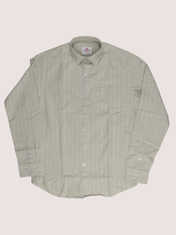 Stylish light green cotton shirt with vertical stripes, designed for casual and office wear. Comfortable, breathable, and versatile.