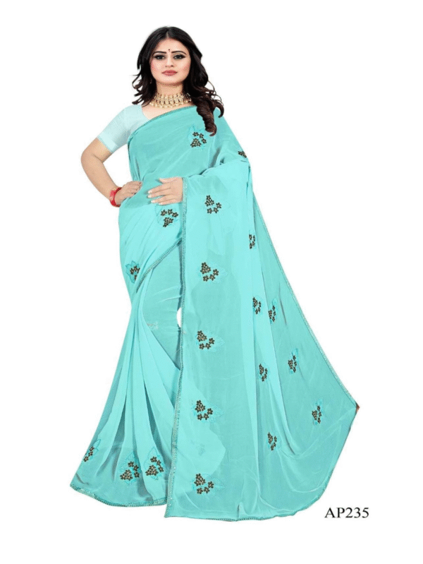 Ritu Aqua Blue Georgette Saree with Elegant Floral Embroidery – AP235