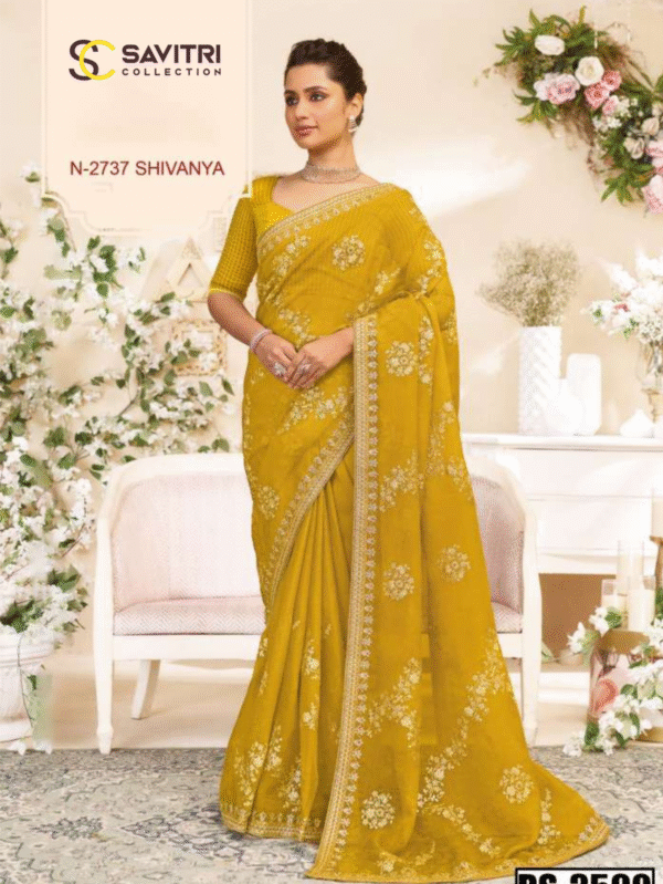 Shivanya N-2737 Mustard Yellow Embroidered Saree – Savitri Collection