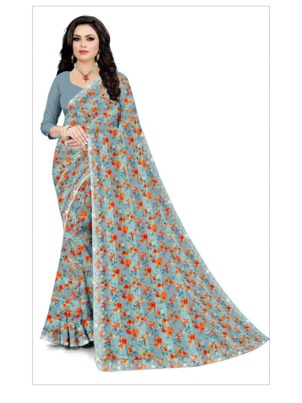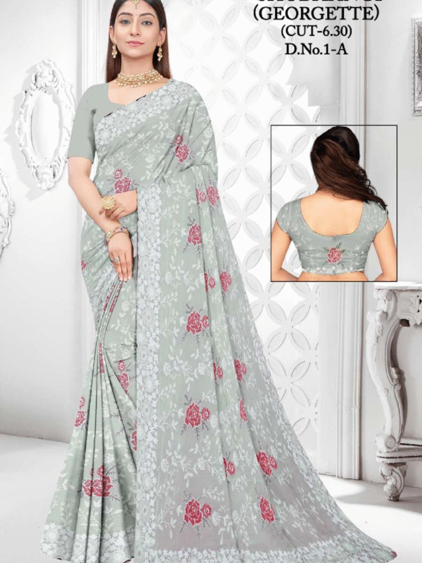 Shubhangi D.No.1-A Light Grey Georgette Saree with Floral Lace Embroidery Work