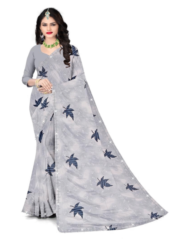 Silver Mist Leaf-Print Designer Saree – Elegant Lightweight Saree for All Occasions