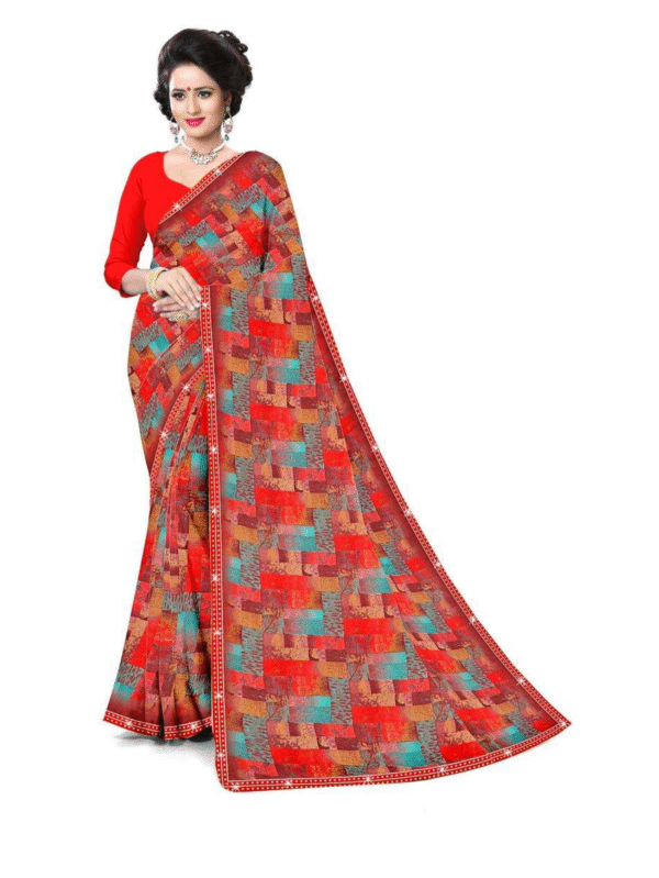 Scarlet Weave Geometric Print Saree – Vibrant Festive Elegance for Every Occasion