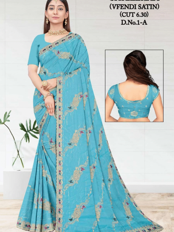 Shrilekha D.No.1-A Sky Blue Vfendi Satin Saree with Elegant Embroidery Work
