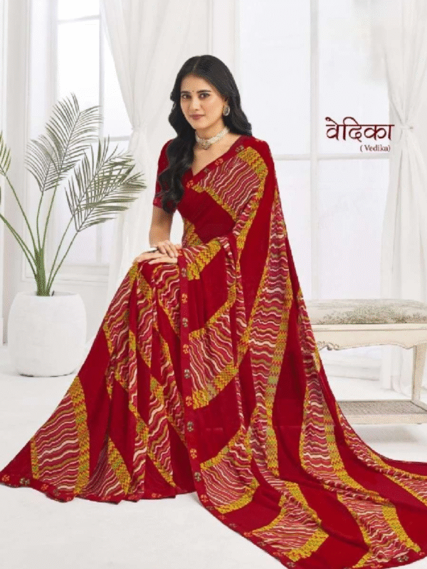 Traditional Red & Orange Bandhani Print Weightless Saree – Festive Wear for Women (D.No.1008)