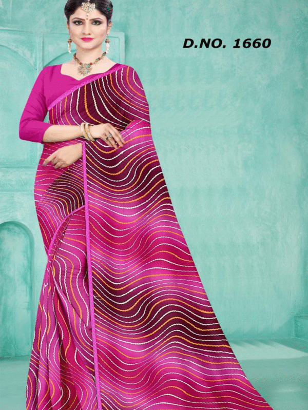 Vibrant Magenta Multi-Wave Printed Saree with Matching Blouse – Elegant Daily & Festive Wear