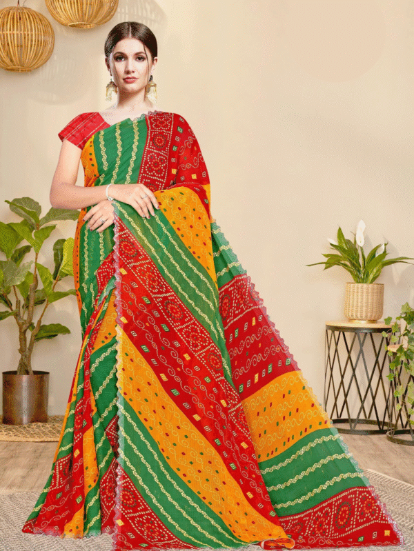 Vibrant Multicolor Bandhani Print Weightless Saree – Traditional Ethnic Saree for Festive & Daily Wear (D.No.1005)
