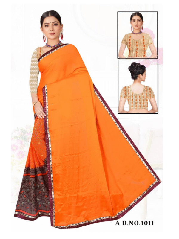 Vibrant Orange Silk Saree with Printed Border & Designer Blouse (A.D.No.1011)