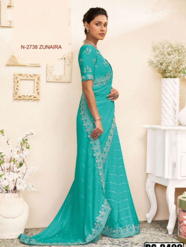 Zunaira N-2738 Aqua Blue Embroidered Saree – Savitri Collection