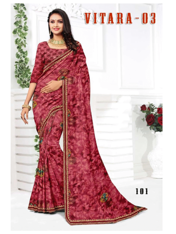 Vitara-03 Maroon Printed Georgette Saree with Elegant Border & Blouse Piece
