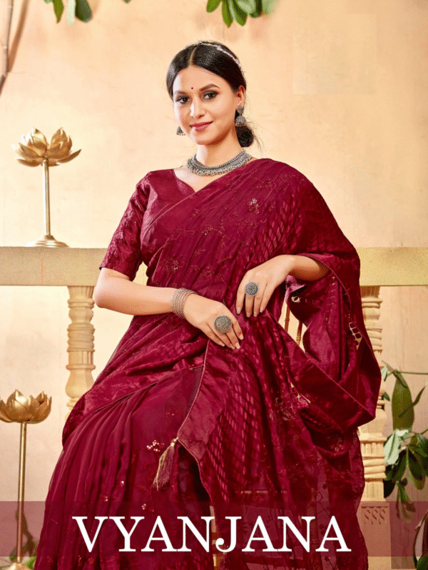 Vyanjana Regal Maroon Designer Silk Saree with Elegant Embellishments