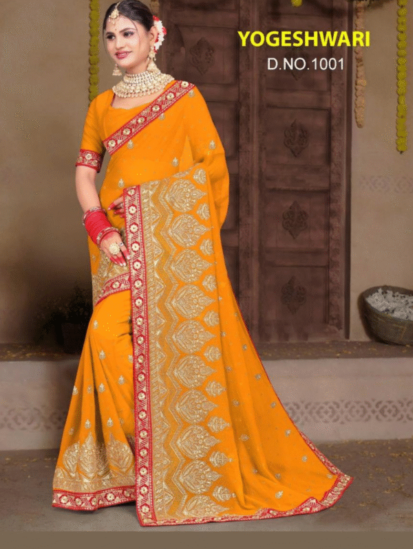 Yoga Shri D.No.1001 Mustard Yellow Traditional Saree with Heavy Embroidered Border