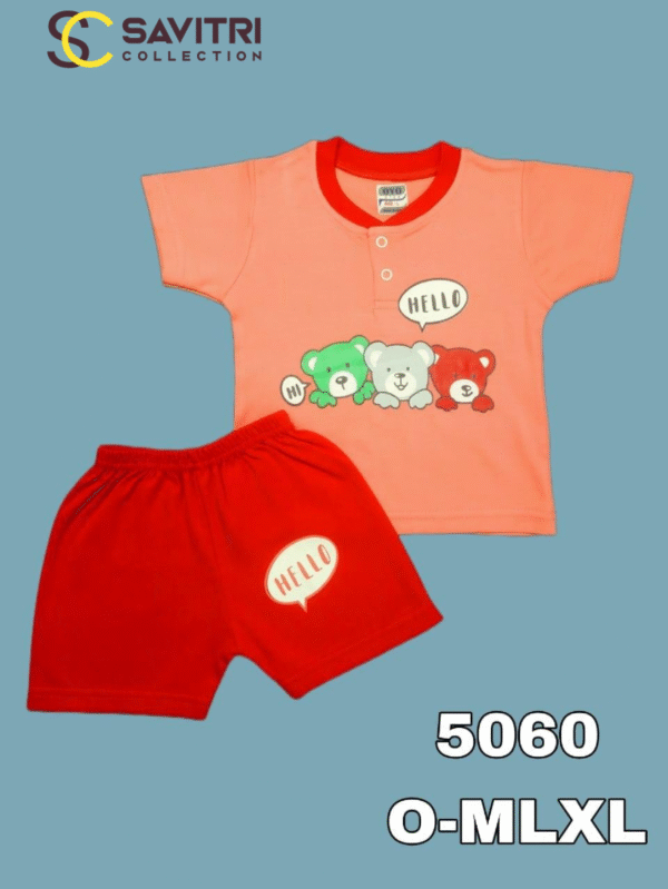 Boys’ Cotton Co-ord Set – “Hello Bears” T-Shirt & Shorts Set