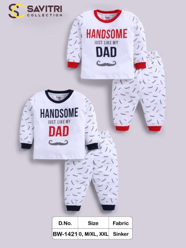 Boys Cotton Night Suit Set – “Handsome Just Like My Dad” Print