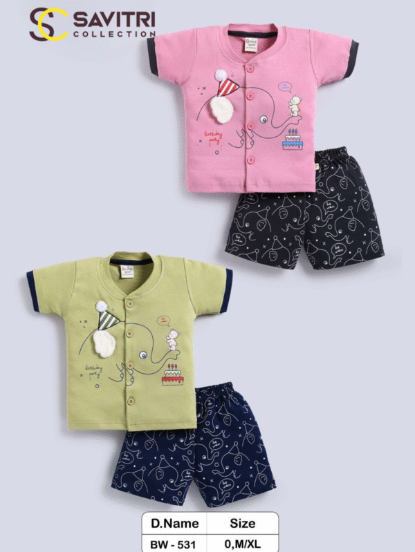 Birthday Party Elephant Printed Baby Wear Set (BW-531)
