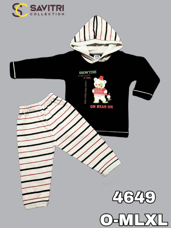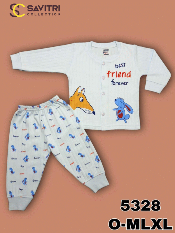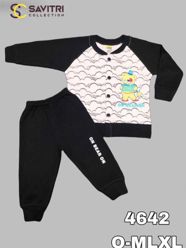 Cute and comfy kids’ nightwear set with a bear print design from Savitri Collection. Soft, stylish, and perfect for sleep and play.