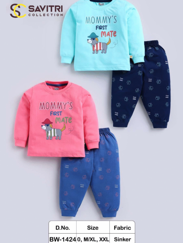 Kids Nightwear Set – “Mommy’s First Mate” Printed Top & Pajama