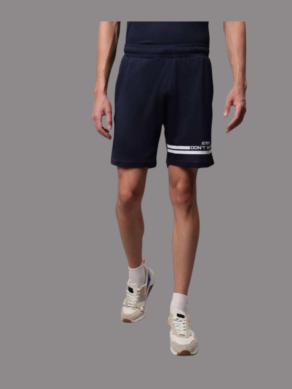 Men’s Navy Blue Printed Lycra Training Shorts – “Don’t Break” Edition