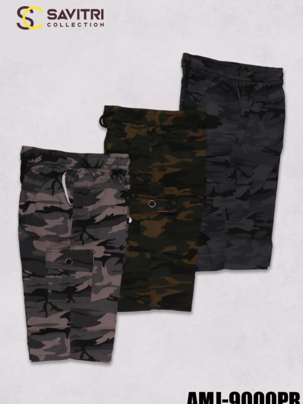 Savitri's AMJ-9000PR camo cargo shorts for men feature multiple pockets, durable fabric, and a cool military design—perfect for casual or outdoor wear.