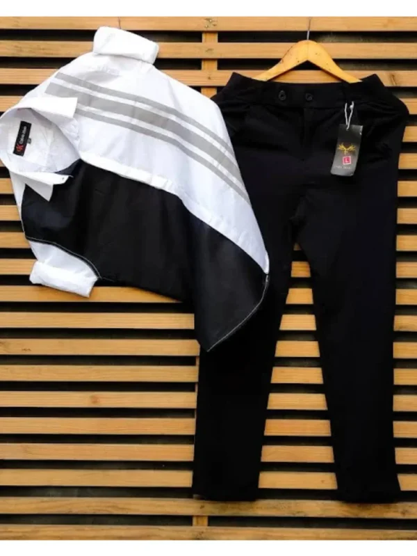 Men’s Urban Monochrome Set – Color-Blocked Shirt & Tailored Black Trousers