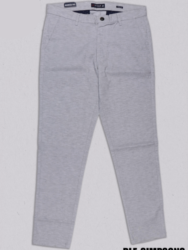 RLE-SIMPSONS Men’s Ankle Fit Cotton Pants in light grey. Perfect for formal and semi-formal occasions with a stylish ankle fit design.