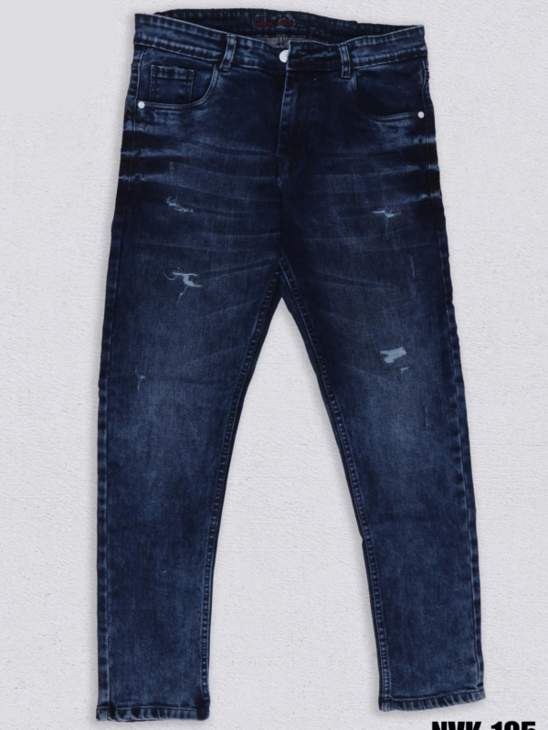 Stay trendy with the NVK-194 Distressed Slim Fit Dark Blue Jeans, featuring a stylish faded wash and modern slim design for everyday streetwear fashion.