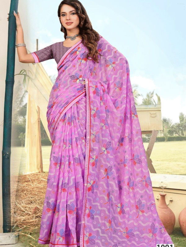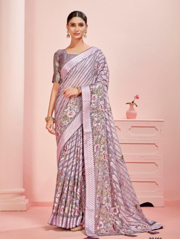 Lavender Grace Floral Printed Traditional Saree – D.No.109