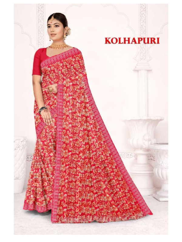 Kolhapuri Charm Red Floral Printed Saree – Traditional Elegance for Every Occasion