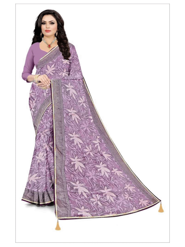 Lavender Floral Print Lightweight Saree with Unstitched Blouse – Elegant Daily & Festive Wear Saree