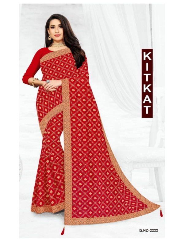 Kitkat Designer Red & Golden Printed Saree – D.No. 2222