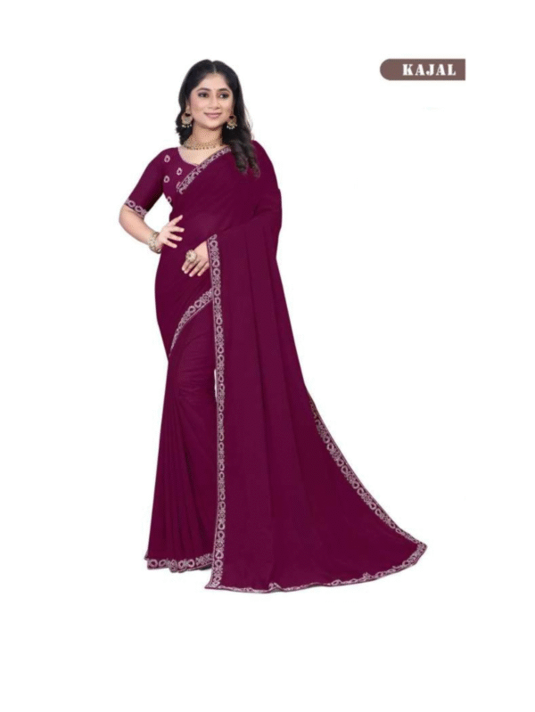 Kajal Plum Purple Satin Silk Saree with Elegant Embroidered Border & Matching Blouse