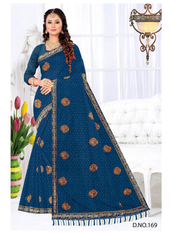 Kashish Navy Blue Georgette Saree with Golden Motif Work & Zari Border – D.No.169