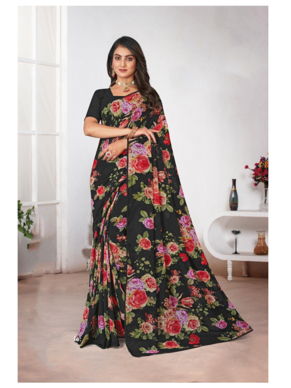 Midnight Bloom – Black Floral Printed Georgette Saree