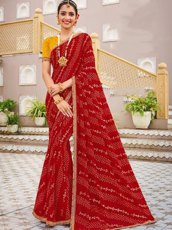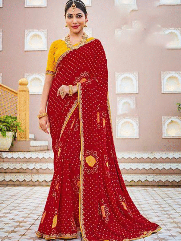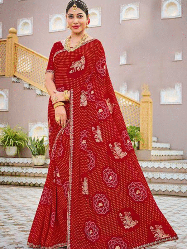 Maya-07 Traditional Red Printed Georgette Saree with Elegant Border & Blouse