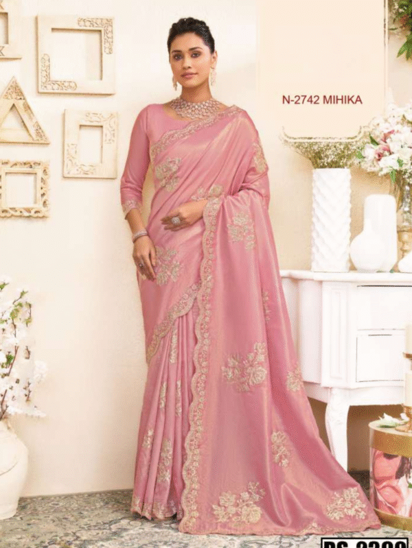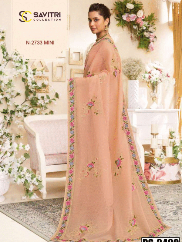 Mini N-2733 Peach Pastel Embroidered Saree – Savitri Collection