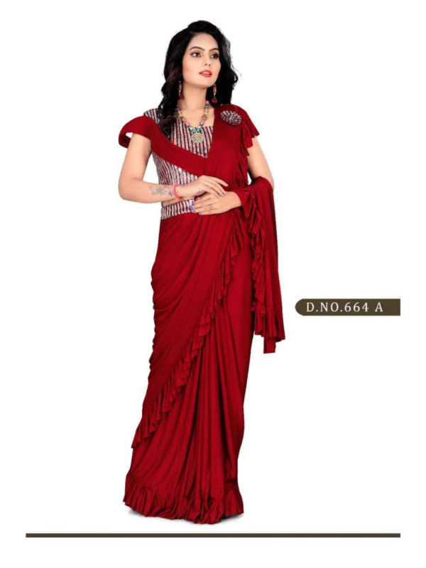Maroon Ruffle Designer Saree with Sequin Blouse – D.No.664 A
