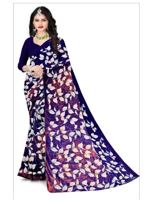 Midnight Leaf Luxe Printed Georgette Saree with Matching Blouse