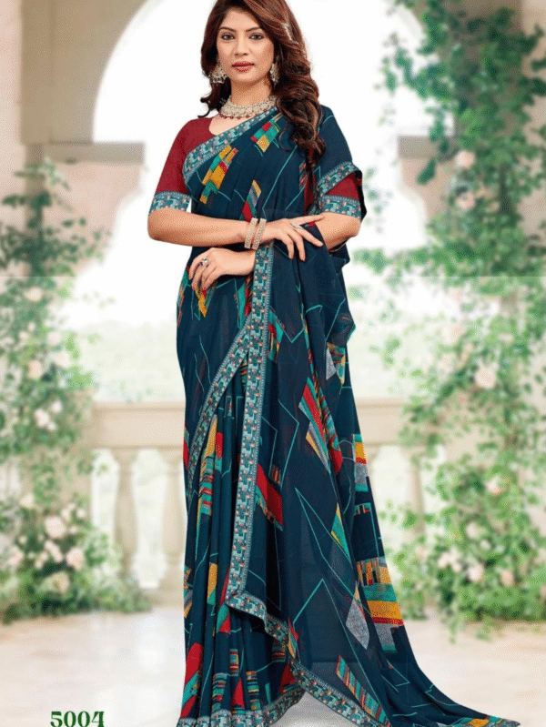 Midnight Mosaic Elegance Georgette Saree – Code 5004