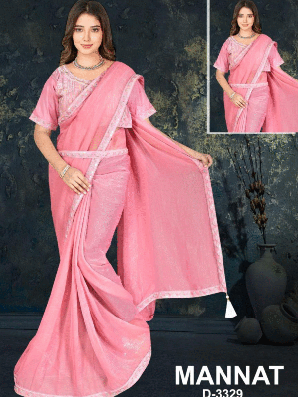 Mannat D-3329 Baby Pink Crunchi Saree with Elegant Sequin Embroidered Border
