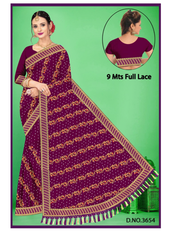 Majestic Plum Full Lace Saree with Designer Blouse – D.NO.3654