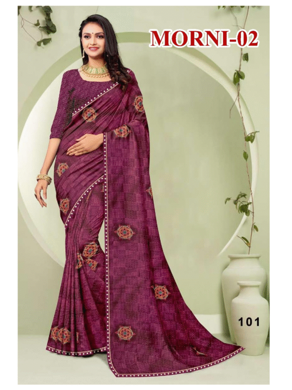 Morni-02 Elegant Maroon Printed Georgette Saree with Embellished Border & Blouse