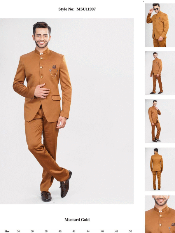 Mustard Gold Indo-Western Suit with Mandarin Collar & Pocket Chain – Style MSU11997