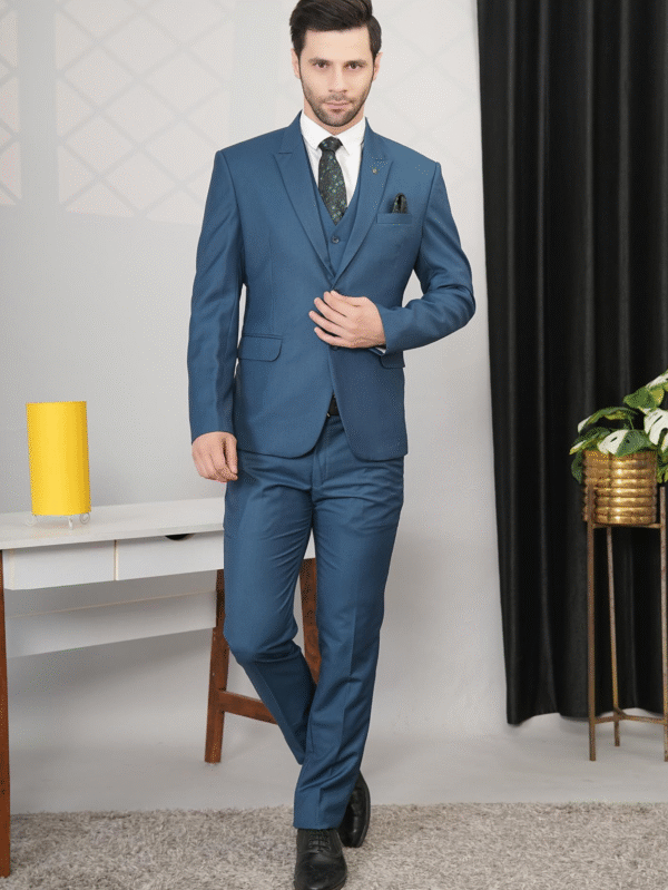 Royal Blue 3-Piece Slim Fit Formal Suit with Waistcoat – Designer Menswear