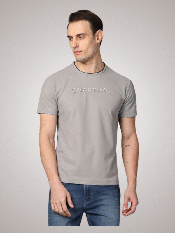 Grey Cotton T-Shirt with “Taka Original” Print – BPSS24TEE076