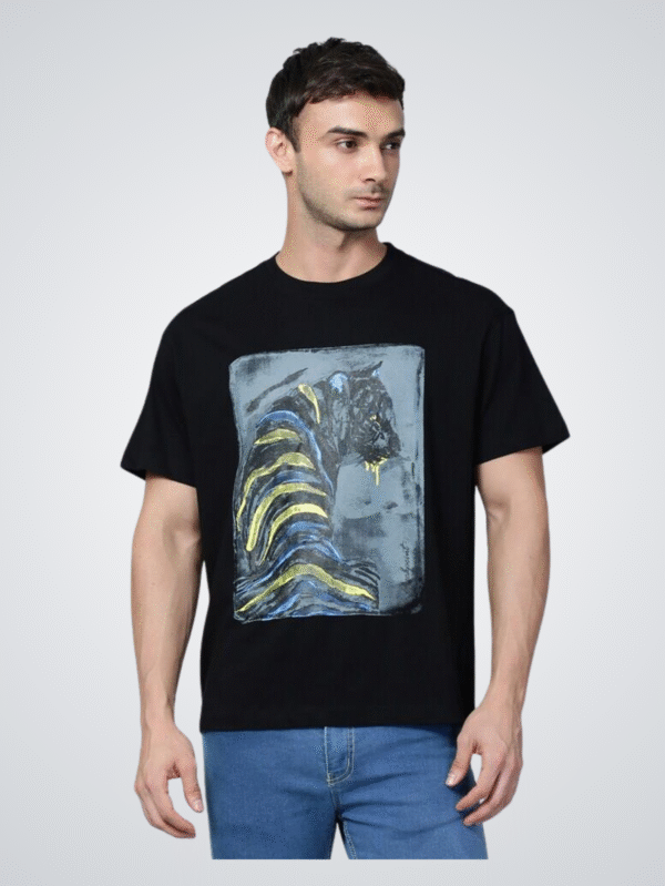 Black Graphic Panther Print T-Shirt for Men – FW24BPNXTTS134