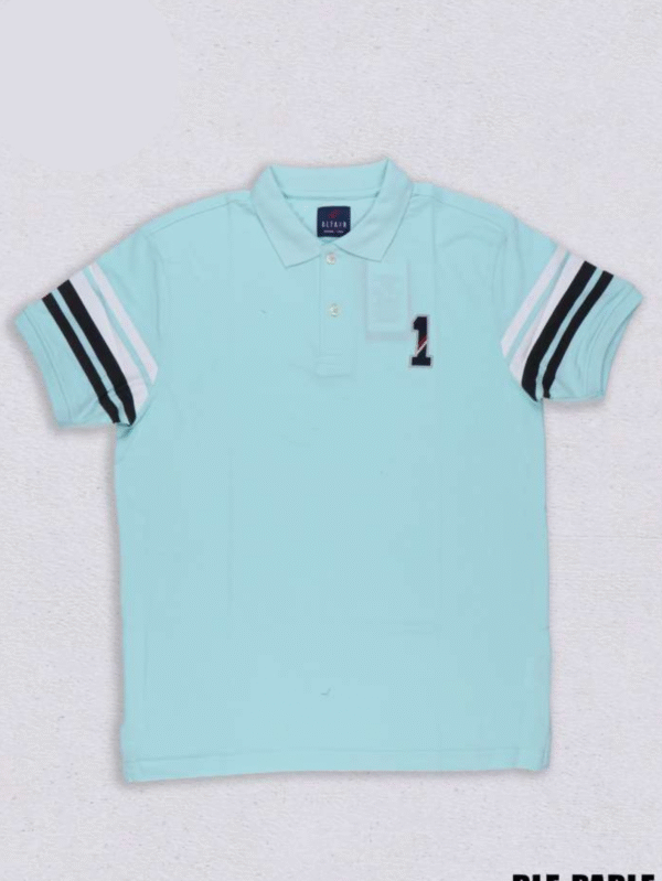 Mint Green Polo T-Shirt for Men with Striped Sleeves – RLE-PARLE